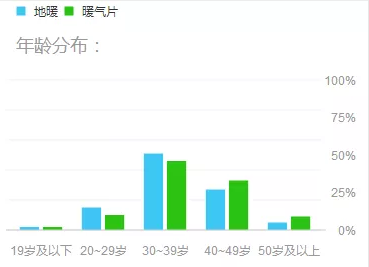 百度大數(shù)據(jù)顯示搜索地暖和暖氣片關(guān)鍵詞的用戶畫像中,30-30歲人群居多,40-49歲次之。可見,人到中青年事業(yè)穩(wěn)定,更關(guān)注于生活的品質(zhì)和家人的健康。噓寒問暖,不如為家人裝套取暖系統(tǒng)。
